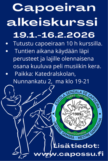 Alkeiskurssilla käydään läpi capoeiran perusliikkeet, väistöt, potkut ja pelin perusteet musiikin kera. Koko kurssin pituus on 10 tuntia, jonka jälkeen voi halutessaan siirtyä vakiovuorolle treenaamaan. Kurssin hinta on 80 €, joka maksetaan seuran tilille. Campus Sporttilaisille kurssi maksaa opiskelijaetuna 60 €.